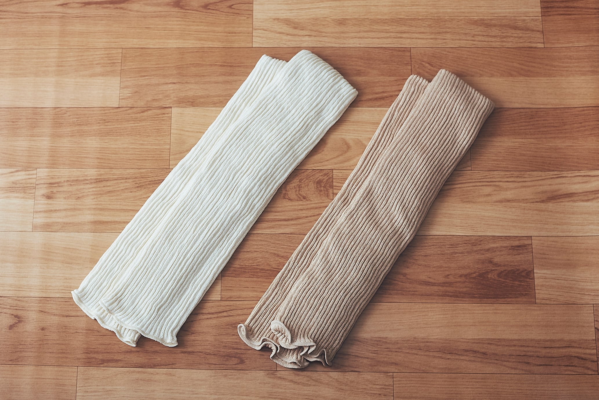 ボリュームのある二枚仕立てのレッグウォーマー。