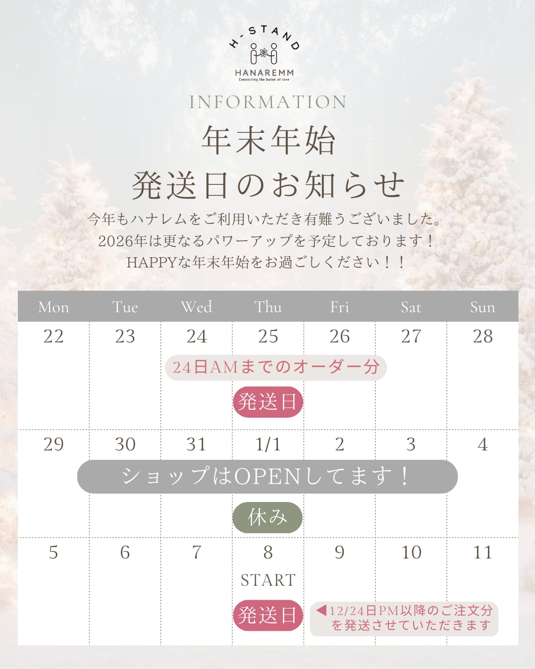 年末年始発送のご案内